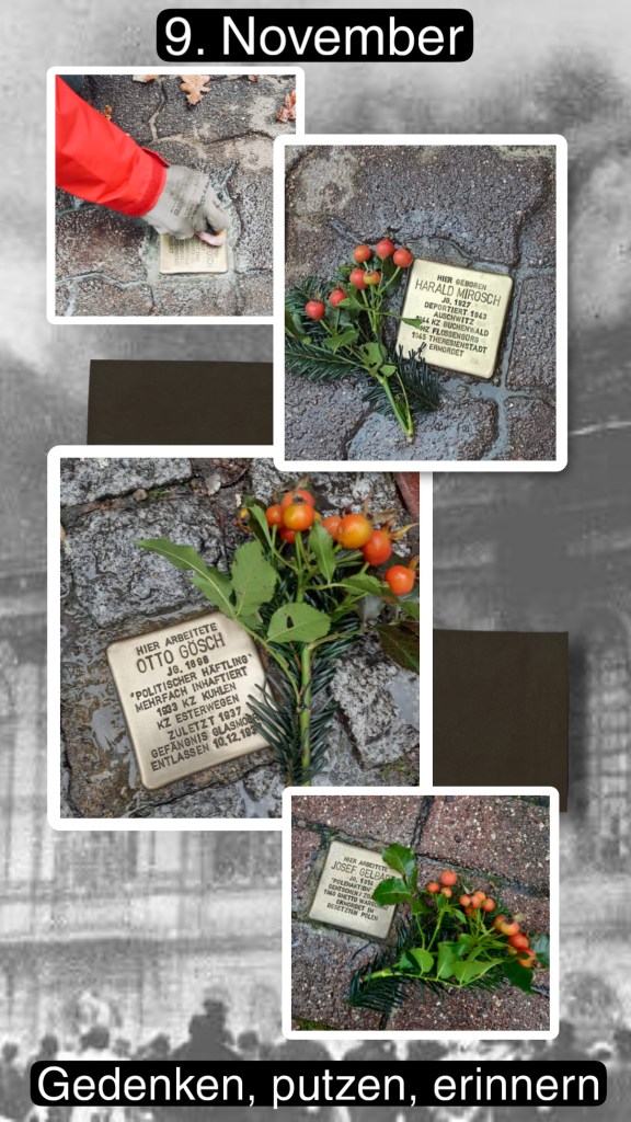 Heute putzen wir Stolpersteine, um die Namen der Opfer sichtbar zu halten und ihrer zu gedenken. Wir stehen ein für eine Gesellschaft, in der Antisemitismus, Rassismus und Hass keinen Platz haben.