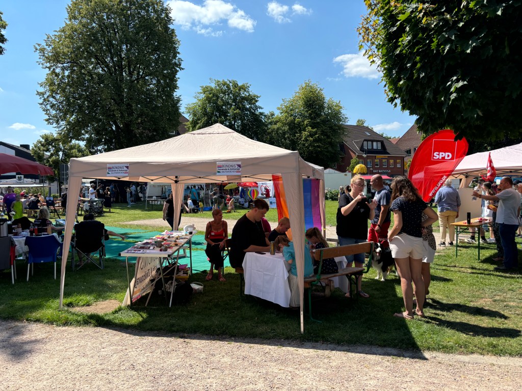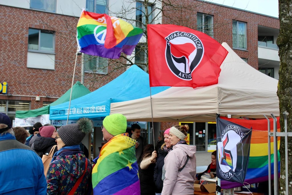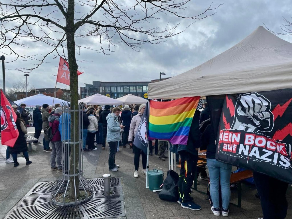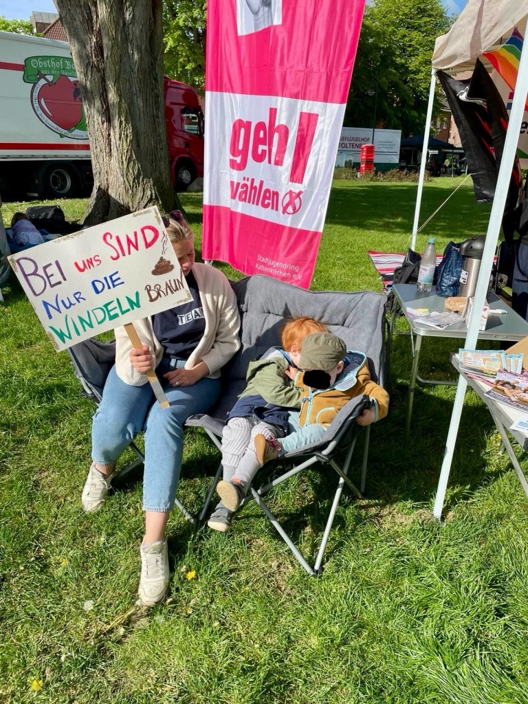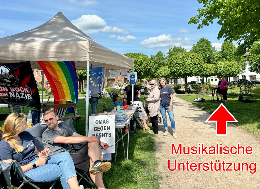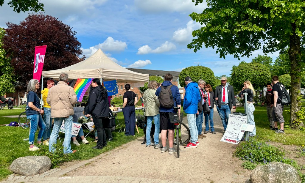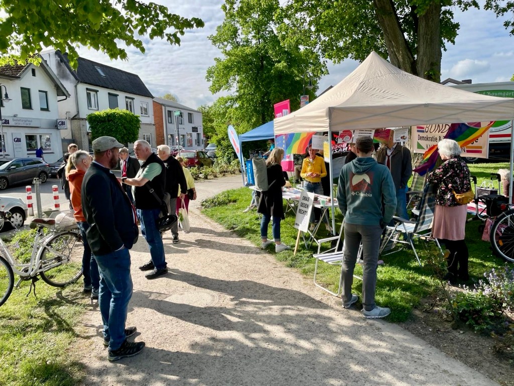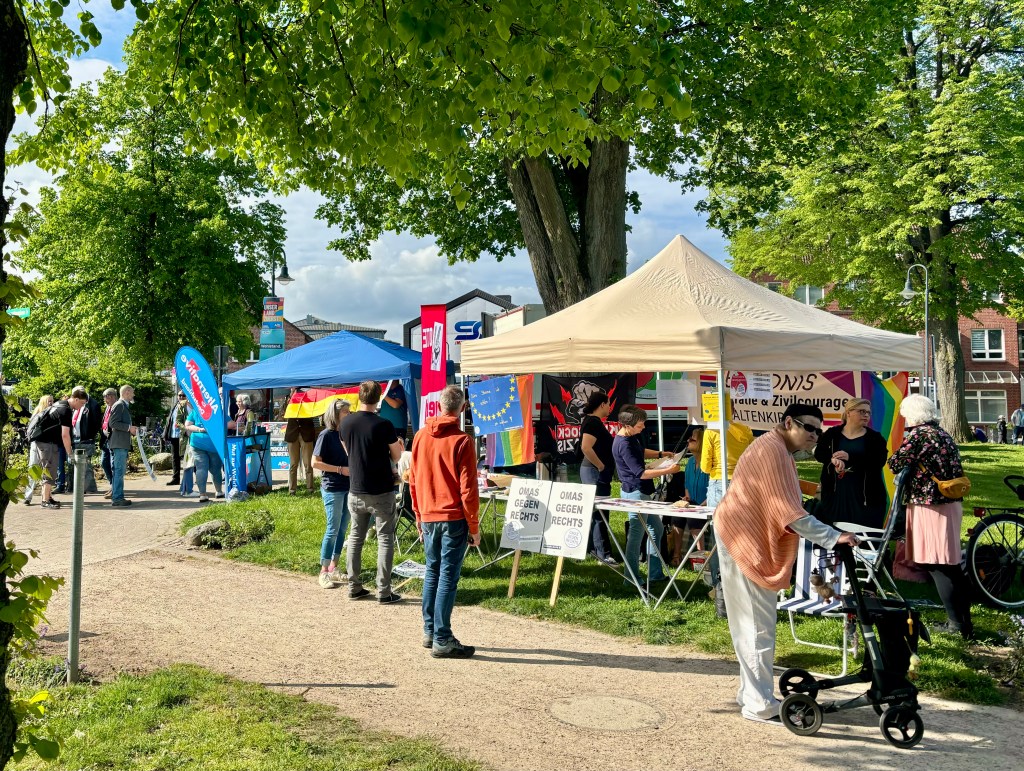 Auch heute waren wir auf dem Markt in Kaltenkirchen zusammen mit Omas gegen Rechts und konnten uns diesmal ordentlich ausbreiten. Die AfD gab sich heute mal nicht die Ehre in Kaltenkirchen. Aufgrund des Wetters war heute weniger los, dennoch wurde sich demokratisch „gestritten“ und so konnten auch Vorurteile auf beiden Seiten ausgeräumt werden. Insgesamt gab es sehr nette und auch konstruktive Gespräche.