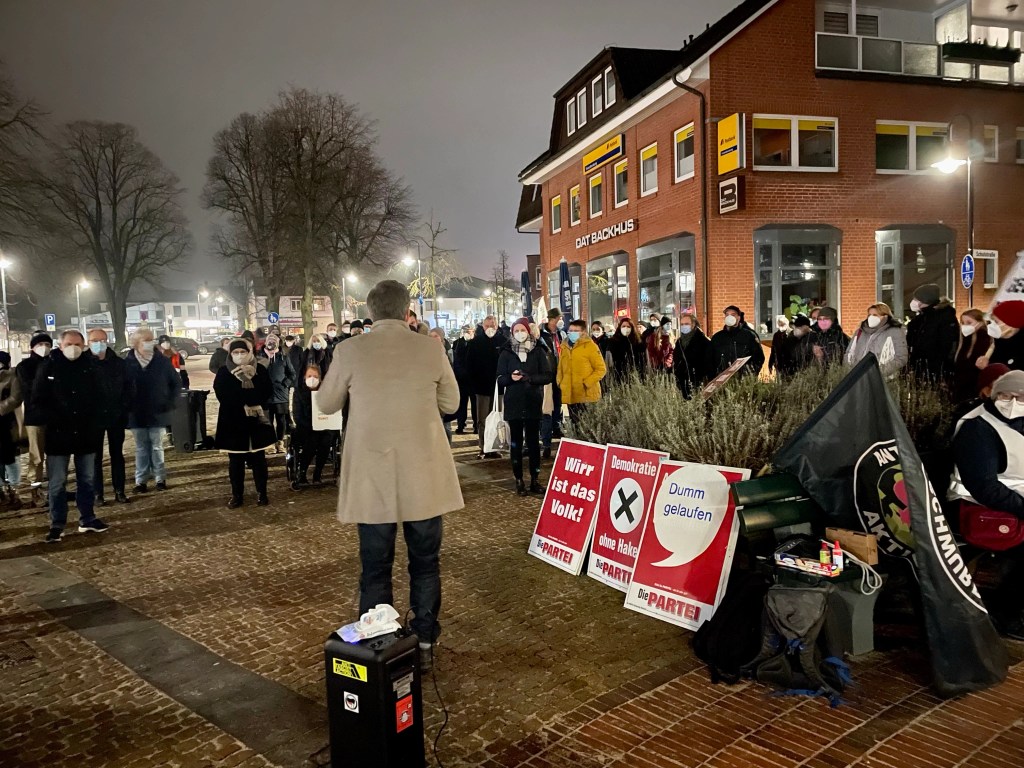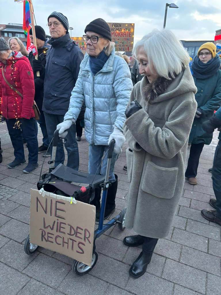 Wir danken insbesondere den OMAS GEGEN RECHTS – SE, dem Henstedt-Ulzburger Bündnis für Demokratie und Vielfalt, Konzi-Crisis Kaltenkirchen und den Vertretern der Parteien von der SPD Kaltenkirchen, den Jusos Bad Segeberg und den Amigos von Die PARTEI Segeberg für das zahlreiche Erscheinen. Ein großes Dankeschön gilt auch den Redner:innen Susanne Steenbuck (SPD), Niels (DiePartei) und Uwe (Omas gegen Rechts).