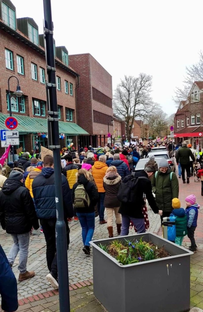 „Die Schätzungen von Polizei und Veranstaltern lagen zwischen 800 und 1200 Menschen, die am Sonnabend in Kaltenkirchen Haltung gezeigt haben – „gemeinsam stark für Demokratie und Vielfalt“, wie die Demo überschrieben war. Es war ein beeindruckend langer Zug, der sich am Nachmittag vom AKN-Bahnhofsplatz aus in Bewegung setzte. Und ein bunter dazu.