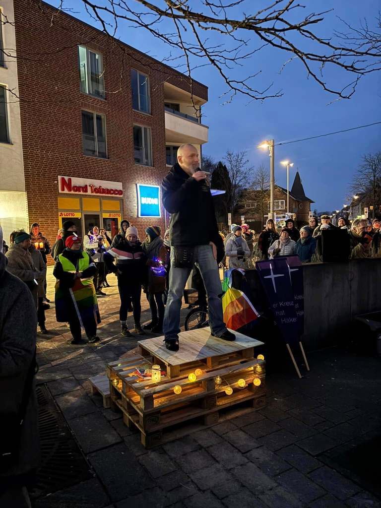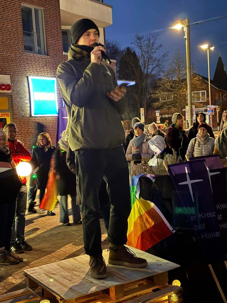Wir danken EUCH und Stefan Niclas Bohlen, Kelly Laubinger von Sintiunionsh Jannike Grosstück von der Ev.-Luth. Kirchengemeinde Kaltenkirchen, Niels Reimers von Regenbogen e.V Kaltenkirchen und Linus von Friday for Future für ihre interessanten und wichtigen Redebeiträge. Danke auch für die Moderation an Juliane und auch auch ein Dank an die Polizei Kaltenkirchen für die gute Zusammenarbeit und Begleitung.